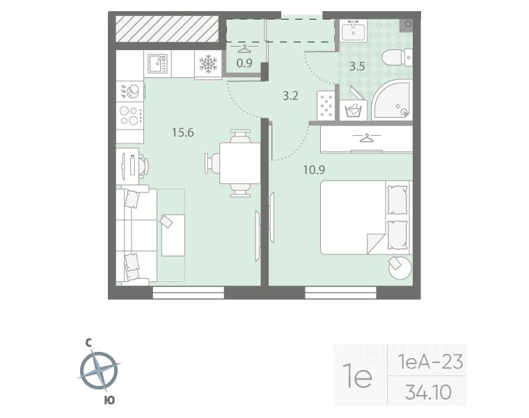 Продается 1-комнатная квартира в ЖК "Дыбенко Парк" на 11 этаже. Общая площадь составляет 34.10 кв. м. Квартира с чистовой отделкой. Жилой комплекс располагается по адресу Санкт-Петербург, проспект Товарищеский.