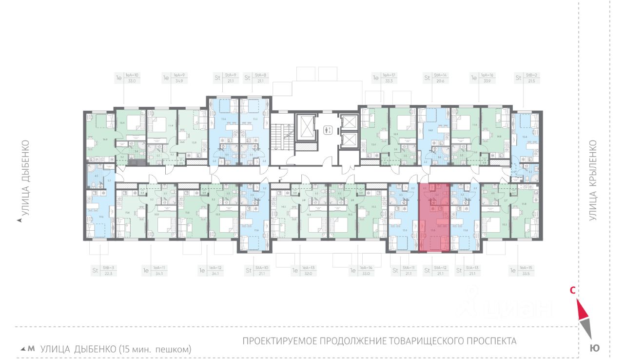 Продается студия в ЖК "Дыбенко Парк" на 2 этаже. Общая площадь составляет 21.10 кв. м. Квартира с чистовой отделкой. Жилой комплекс располагается по адресу Санкт-Петербург, проспект Товарищеский.