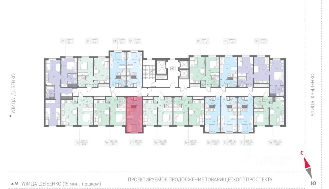 Продается студия в ЖК "Дыбенко Парк" на 10 этаже. Общая площадь составляет 21.10 кв. м. Квартира с чистовой отделкой. Жилой комплекс располагается по адресу Санкт-Петербург, проспект Товарищеский.