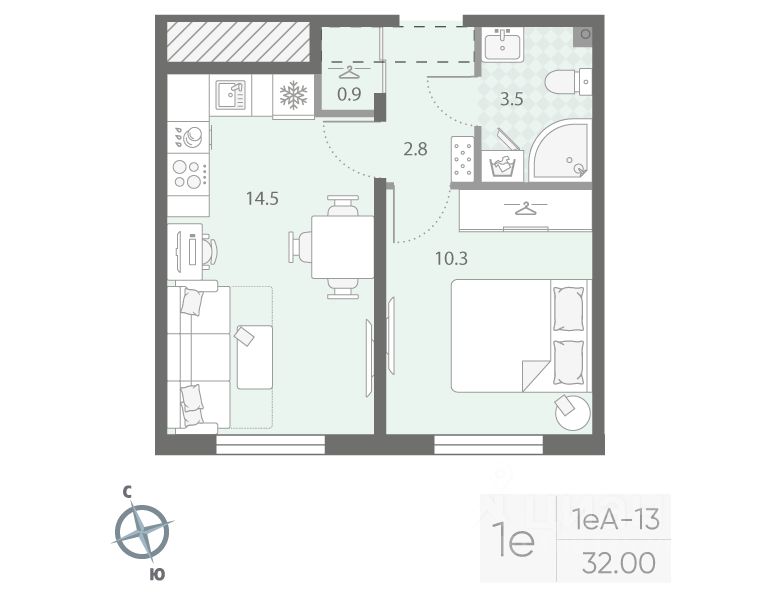 Продается 1-комнатная квартира в ЖК "Дыбенко Парк" на 18 этаже. Общая площадь составляет 32.00 кв. м. Квартира с чистовой отделкой. Жилой комплекс располагается по адресу Санкт-Петербург, проспект Товарищеский.