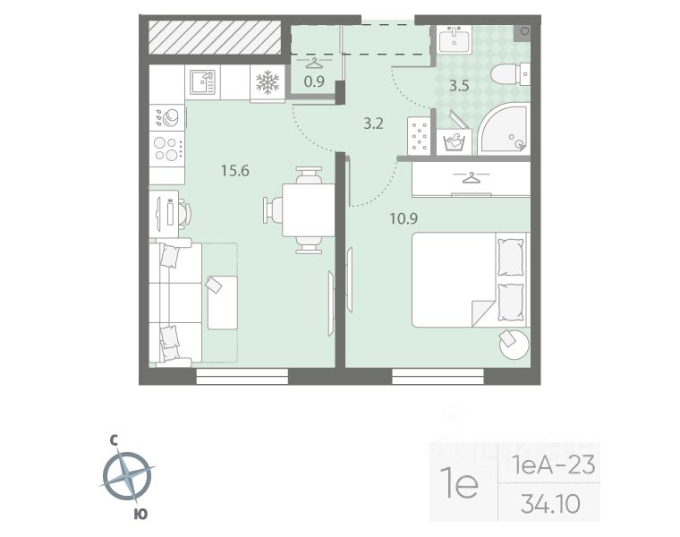 Продается 1-комнатная квартира в ЖК "Дыбенко Парк" на 13 этаже. Общая площадь составляет 34.10 кв. м. Квартира с чистовой отделкой. Жилой комплекс располагается по адресу Санкт-Петербург, проспект Товарищеский.