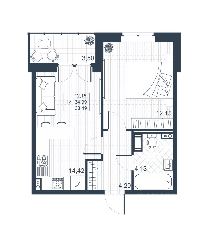 Общая площадь34,8 м²