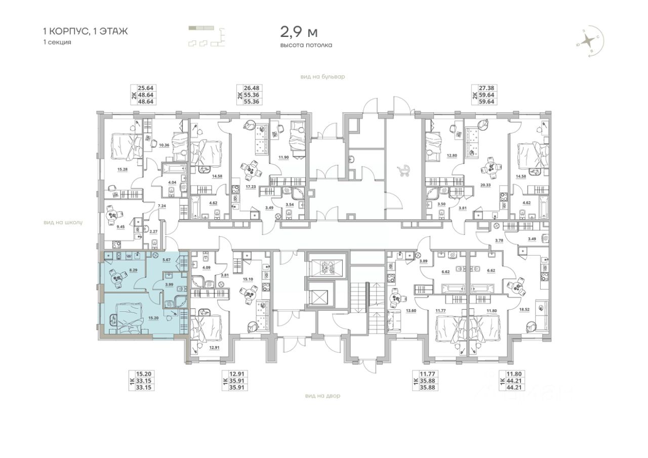 Продаётся 1-комнатная квартира 002, общей площадью 33.15 кв.м., на 1 этаже. Дом комфорт-класса, 12 этажей, в окружении леса и малоэтажной застройки. Проект с умным домом.
