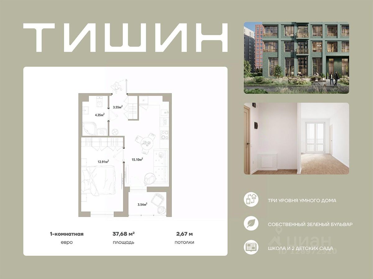 Продаётся 1-комнатная квартира 214, общей площадью 37.68 кв.м., на 2 этаже. Дом комфорт-класса, 12 этажей, в окружении леса и малоэтажной застройки. Проект с умным домом.