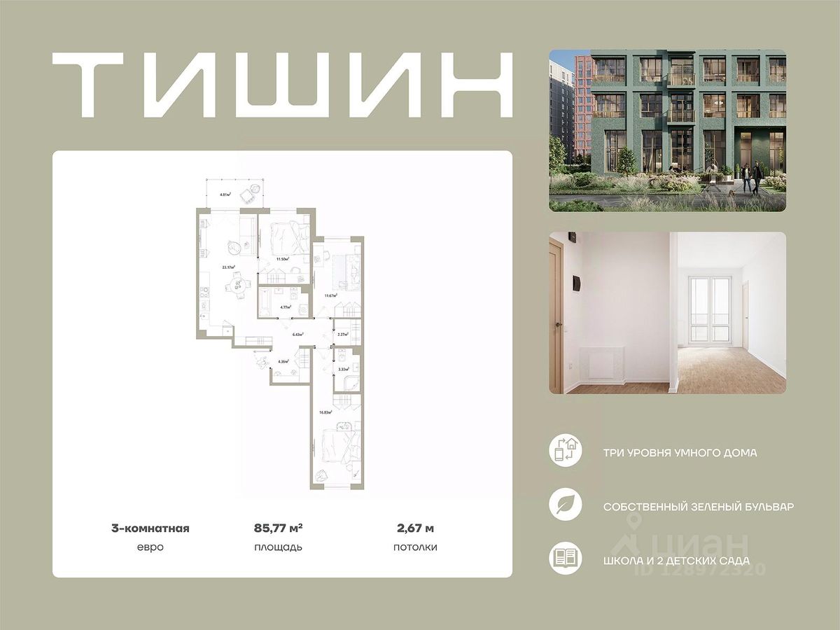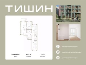 Продаётся 3-комнатная квартира 002, общей площадью 85.77 кв.м., на 2 этаже. Дом комфорт-класса, 12 этажей, в окружении леса и малоэтажной застройки. Проект с умным домом.