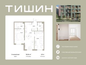 Продаётся 2-комнатная квартира 097, общей площадью 53.34 кв.м., на 1 этаже. Дом комфорт-класса, 12 этажей, в окружении леса и малоэтажной застройки. Проект с умным домом.