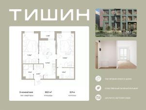 Продаётся 2-комнатная квартира 302, общей площадью 53.1 кв.м., на 9 этаже. Дом комфорт-класса, 12 этажей, в окружении леса и малоэтажной застройки. Проект с умным домом.