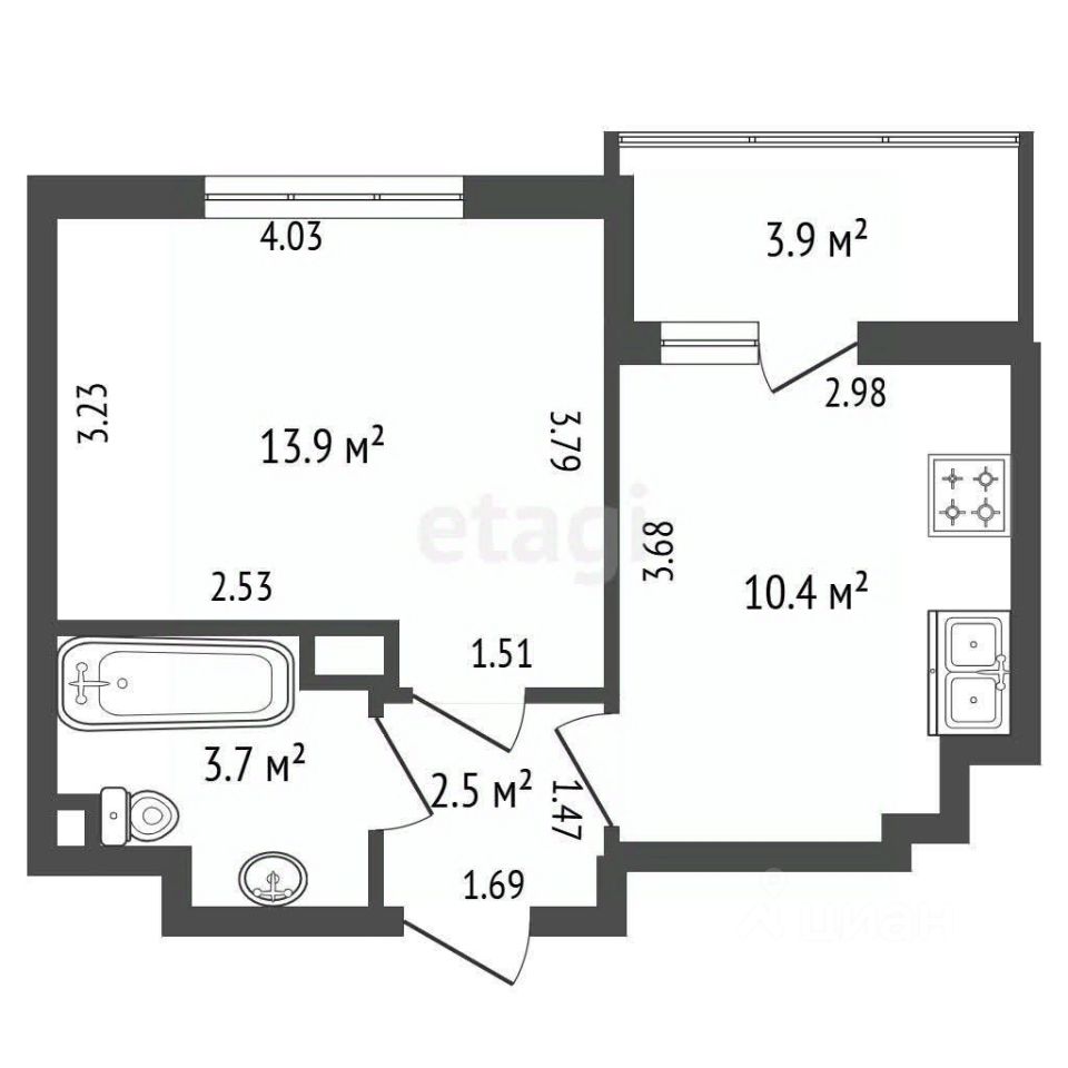 - Санузел: 3,8 квадратных метров удобная планировка, есть ванная для вашего комфорта.