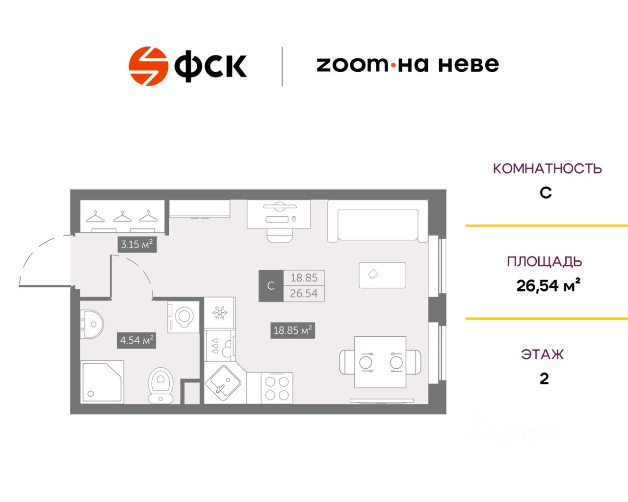 Цена со скидкой до 30% в прямой продаже от застройщика — только в этом месяце. При покупке апартаментов - паркинг за полцены. На все апартаменты действует беспроцентная рассрочка. Купите на распродаже! Покупка недвижимости в Zoom на Неве сейчас со скидкой до 30% позволит через 2 года получить доход до 6 300 000 руб. Роскошные виды на Неву. Апартамент-студия в комплексе класса бизнес-лайт Zoom на Неве на 2-м этаже. Общая площадь 26,54. Чистовая отделка.