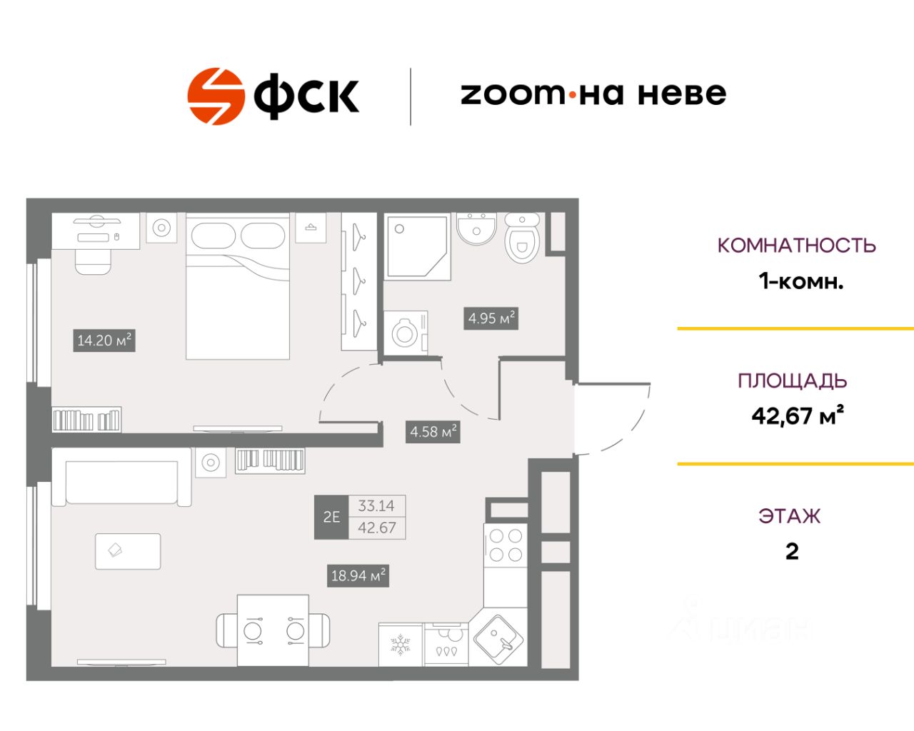 Цена со скидкой до 30% в прямой продаже от застройщика — только в этом месяце. При покупке апартаментов - паркинг за полцены. На все апартаменты действует беспроцентная рассрочка. Купите на распродаже! Покупка недвижимости в Zoom на Неве сейчас со скидкой до 30% позволит через 2 года получить доход до 6 300 000 руб. Роскошные виды на Неву. 1-к апартамент в комплексе класса бизнес-лайт Zoom на Неве на 2-м этаже. Общая площадь 42,67. Чистовая отделка.