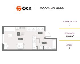 Цена со скидкой до 30% в прямой продаже от застройщика — только в этом месяце. При покупке апартаментов - паркинг за полцены. На все апартаменты действует беспроцентная рассрочка. Купите на распродаже! Покупка недвижимости в Zoom на Неве сейчас со скидкой до 30% позволит через 2 года получить доход до 6 300 000 руб. Роскошные виды на Неву. Апартамент-студия в комплексе класса бизнес-лайт Zoom на Неве на 3-м этаже. Общая площадь 31,69. Чистовая отделка.