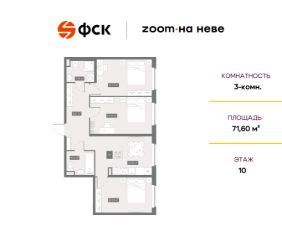 Цена со скидкой до 30% в прямой продаже от застройщика — только в этом месяце. При покупке апартаментов - паркинг за полцены. На все апартаменты действует беспроцентная рассрочка. Купите на распродаже! Покупка недвижимости в Zoom на Неве сейчас со скидкой до 30% позволит через 2 года получить доход до 6 300 000 руб. Роскошные виды на Неву. 3-к апартамент в комплексе класса бизнес-лайт Zoom на Неве на 10-м этаже. Общая площадь 71,6. Чистовая отделка.