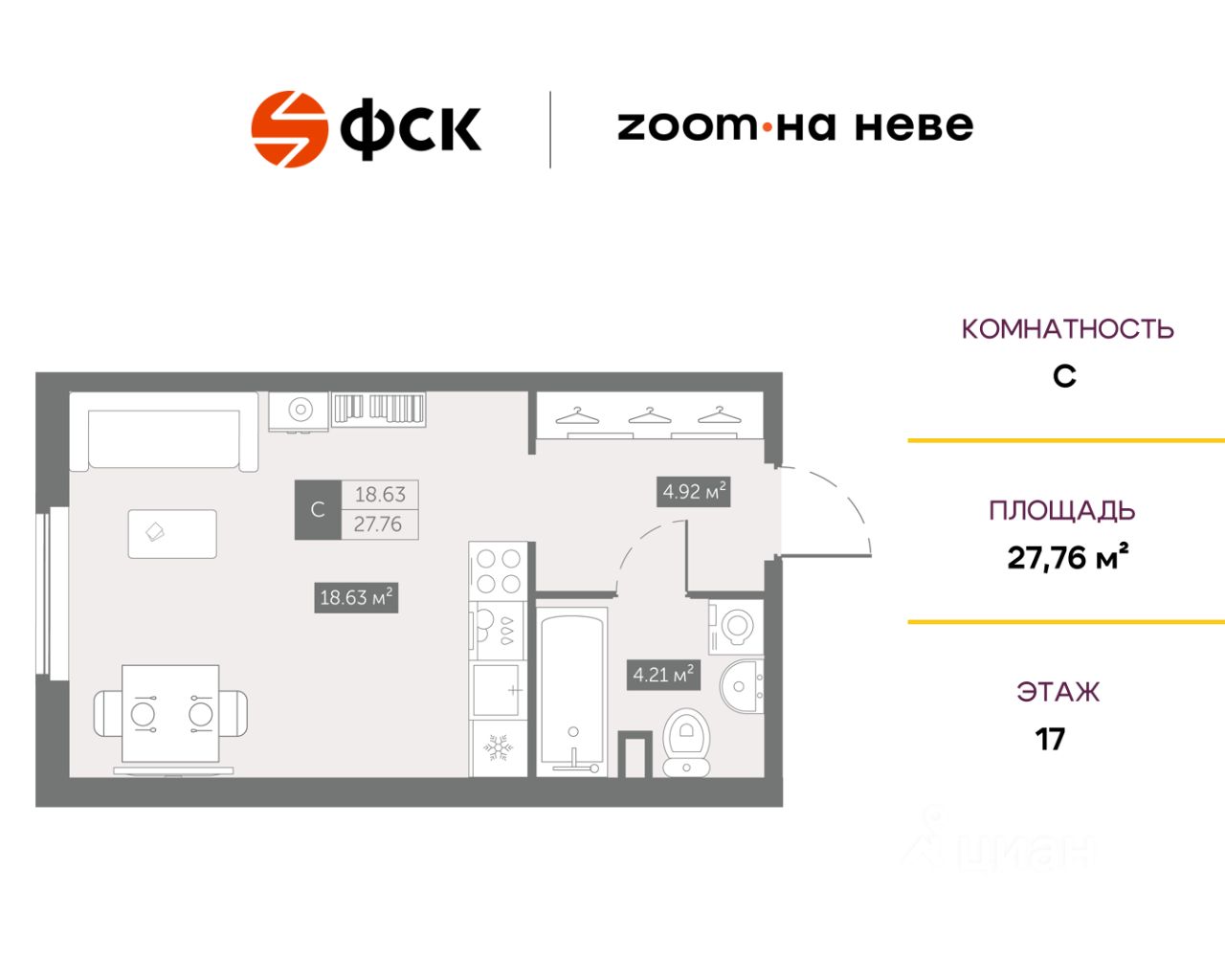 Цена со скидкой до 30% в прямой продаже от застройщика — только в этом месяце. При покупке апартаментов - паркинг за полцены. На все апартаменты действует беспроцентная рассрочка. Купите на распродаже! Покупка недвижимости в Zoom на Неве сейчас со скидкой до 30% позволит через 2 года получить доход до 6 300 000 руб. Роскошные виды на Неву. Апартамент-студия в комплексе класса бизнес-лайт Zoom на Неве на 17-м этаже. Общая площадь 27,76. Чистовая отделка.