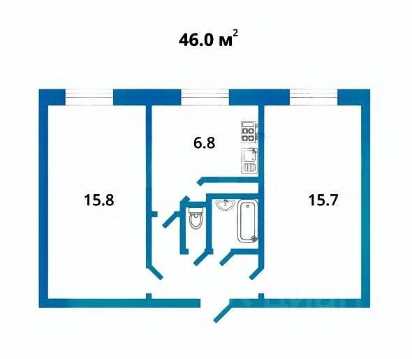 Просторная 2-комнатная квартира с общей площадью 46 м².