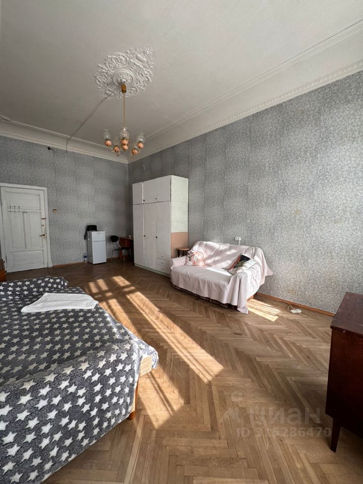 Комната расположена в самом начале коммунальной квартиры,минимальная слышимость, как в отдельной студии, рядом сан.узел,есть свой маленький коридор, своя мини гардеробная, и отдельная кладовка на кухне. Комната правильной формы, два больших арочных окна, которые выходят на Невский проспект, слышимости нет, солнечная сторона, комната тёплая. Подоконник из белого мрамора, фурнитура окна сохранена уникальная, также сохранена лепнина по всему периметру. Паркет родной, в очень хорошем состоянии! Высота потолков 3.8!Вся квартира содержится в идеальном состоянии, всё очень чисто, ведётся строгий график дежурств!Два сан узла, большая кухня 21кв, 3 плиты, в квартире не курят, все граждане РФ, нет сторожил, все с уважением относятся к друг другу. В трех комнатах живут арендаторы. На данный момент, в квартире проживают 8 человек.