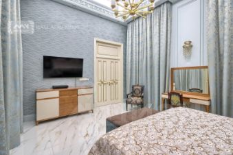 Квартира находится в бельэтаже, основной вид на зеленый бульвар. К ней ведет широкий и комфортный лестничный марш. Был произведен полный капитальный ремонт с заменой всех коммуникаций. Квартира оснащена современными иженерными системами: приточно-вытяжной вентиляцией, системой водоочистки и водоподготовки с резервными бойлерами подогрева горячей воды. Высота потолков в конструкциях 4.5 метра, сделаны подшивные потолки с обнажениями, высота в чистоте 4.3 метра. Руками лучших реставраторов города воссоздана лепнина (уникальные узоры в каждой комнате), восстановлен камин. При этом охранные элементы в квартире отсутствуют - у вас не будет сложностей с ее эксплуатацией. Планировочное решение продумано: все комнаты исключительно просторны и позволят разместиться как большой семье, так и принимать гостей. В квартире 3 санузла, организовано много мест для хранения.