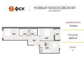 Цена со скидкой до 30% в прямой продаже от застройщика — только в этом месяце. Беспроцентная рассрочка. 2-к квартира в ЖК Up-квартал "Новый Московский" на 7-м этаже. Общая площадь 58,1. Чистовая отделка.