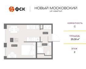 Цена со скидкой до 30% в прямой продаже от застройщика — только в этом месяце. Беспроцентная рассрочка. Студия в ЖК Up-квартал "Новый Московский" на 2-м этаже. Общая площадь 25,09. Без отделки.