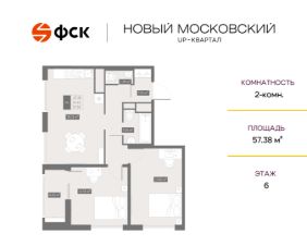 Цена со скидкой до 30% в прямой продаже от застройщика — только в этом месяце. Беспроцентная рассрочка. 2-к квартира в ЖК Up-квартал "Новый Московский" на 6-м этаже. Общая площадь 57,38. Чистовая отделка.