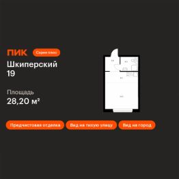 Продаётся квартира-студия площадью 28,2 кв.м на 10 этаже 12 этажного дома (Корпус 1, Секция 4) проекта ПИК Шкиперский 19. Светлый просторный подъезд на уровне земли, функциональная планировка, большие окна, предчистовая отделка.