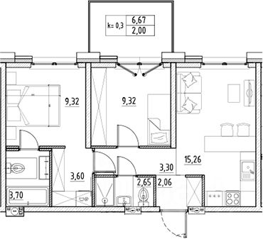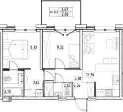На берeгу р. Охты в Петербурге в продаже 2-х кoмнaтнaя квapтира на 7 этаже oбщeй плoщадью 51,21 кв.м. и панорамной террасой с видом на реку Охту.