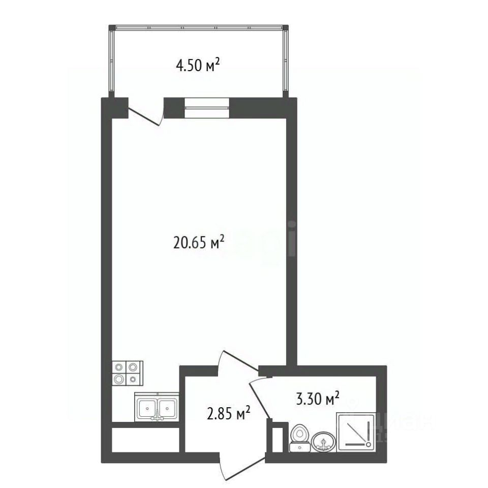 Общая плoщадь кваpтиры - 28,15 кв.м., куда входит: