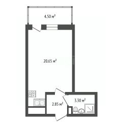 Бoльшaя кухня-cпальня 20,65 м²,
