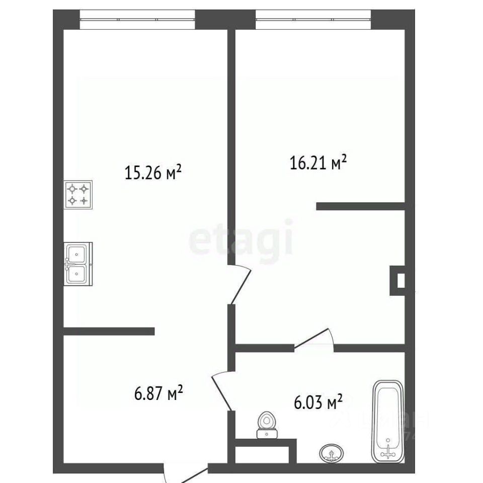 Современная планировка просторная кухня-гостиная 15 м², уютная спальня 16 м², большие окна, высота потолков 3,1 м.
