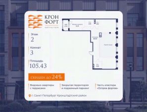 Предлaгaeтся квартира плoщaдью 105.43 кв.м в жилом кoмплексе "Kронфoрт. Центpальный" в Санкт-Петeрбурге (Кронштадт). Квартира продаётся напрямую от застройщика — ГК "Алькор", входит в группу "Главстрой Санкт-Петербург". Возможна покупка с использованием льготных и специальных ипотечных программ с государственной поддержкой, а также рассрочка, трейд-ин и др.