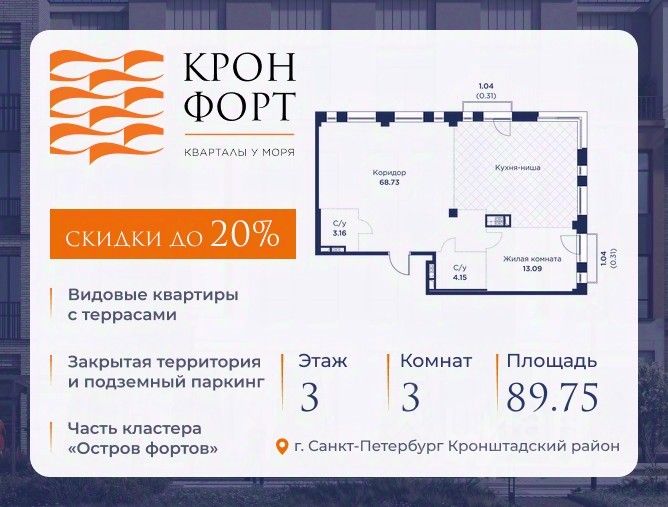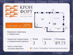 Предлагается квартира площадью 89.75 кв.м в жилом комплексе "Кронфорт. Центральный" в Санкт-Петербурге (Кронштадт). Возможна покупка с использованием льготных и специальных ипотечных программ с государственной поддержкой.