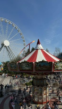 Вид на зелёный двор, колесо обозрения, главные купола Санкт-Петербурга.