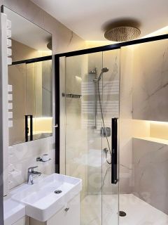 - установка сантехнических приборов (душевая кабина с душем AmPm Awe Round 450, раковина, подвесной унитаз Villeroy&Bosch SUBWAY);