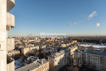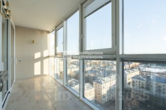 Просторная лоджия с панорамным остеклением и панорамным видом на город.