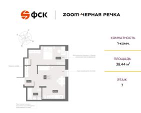 Цена со специальной скидкой в прямой продаже от застройщика — только в этом месяце. 1-к апартамент в комплексе класса бизнес-лайт Zoom Чёрная Речка на 7-м этаже. Общая площадь 38,44. Предчистовая отделка.