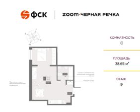 Цена со специальной скидкой в прямой продаже от застройщика — только в этом месяце. Апартамент-студия в комплексе класса бизнес-лайт Zoom Чёрная Речка на 9-м этаже. Общая площадь 38,65. Чистовая отделка.
