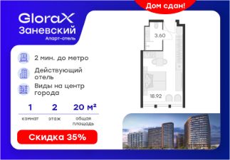 Продается апартамент-студия на 2-м этаже в Апарт-отеле "GloraX Заневский" с сервисом 4*. Старт работы отеля - декабрь 2024 г.! Общая площадь лота составляет 22,52 кв. м, из которых 18,92 кв. м отведено под жилую. Номер апартамента - 206.