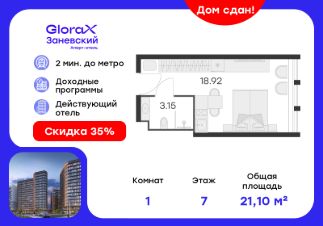 Продается апартамент-студия на 7-м этаже в Апарт-отеле "GloraX Заневский" с сервисом 4*. Старт работы отеля - декабрь 2024 г.! Общая площадь лота составляет 22,07 кв. м, из которых 18,92 кв. м отведено под жилую. Номер апартамента - 728.
