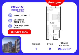 Продается апартамент-студия на 2-м этаже в Апарт-отеле "GloraX Заневский" с сервисом 4*. Старт работы отеля - декабрь 2024 г.! Общая площадь лота составляет 22,43 кв. м, из которых 18,83 кв. м отведено под жилую. Номер апартамента - 224.