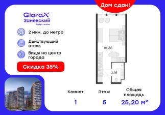 Продается апартамент-студия на 5-м этаже в Апарт-отеле "GloraX Заневский" с сервисом 4*. Старт работы отеля - декабрь 2024 г.! Общая площадь лота составляет 21,53 кв. м, из которых 18,38 кв. м отведено под жилую. Номер апартамента - 524.