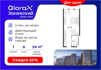Продается апартамент-студия на 6-м этаже в Апарт-отеле "GloraX Заневский" с сервисом 4*. Старт работы отеля - декабрь 2024 г.! Общая площадь лота составляет 21,53 кв. м, из которых 18,38 кв. м отведено под жилую. Номер апартамента - 618.