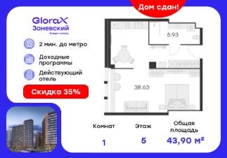 Продается 1-комн. апартамент на 5-м этаже в Апарт-отеле "GloraX Заневский" с сервисом 4*. Старт работы отеля - декабрь 2024 г.! Общая площадь лота составляет 44,56 кв. м, из которых 38,63 кв. м отведено под жилую. Номер апартамента - 509.