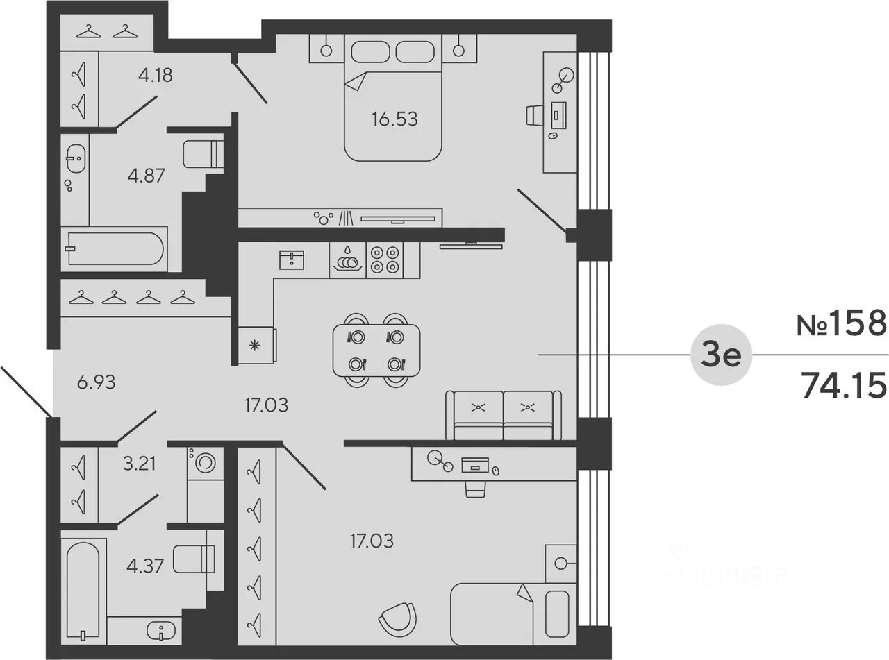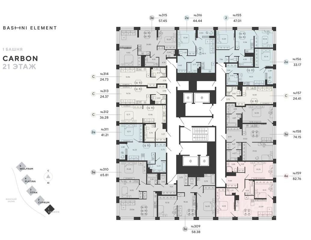 Квартира 158 в корпусе Carbon проекта бизнес-класса "BASHNI ELEMENT"