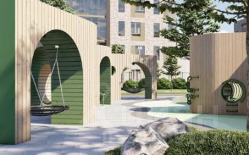 Дома соединяются сетью велодорожек и благоустроенных прогулочных маршрутов.