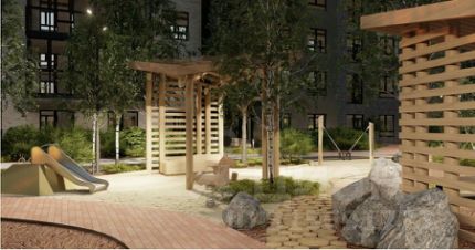 Во дворе расположены 4 детских сада на 810 мест и 2 школы на 1650 мест. На территории предусмотрены прогулочные зоны с местами для отдыха и искусственный водоем, также имеется зона выгула и тренировки собак.