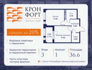 Предлагается квартира площадью 36.6 кв.м в жилом комплексе "Кронфорт. Центральный" в Санкт-Петербурге (Кронштадт). Возможна покупка с использованием льготных и специальных ипотечных программ с государственной поддержкой.