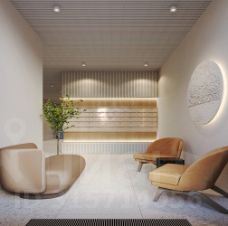 - Парадный лобби для жильцов. Единый вход в комплекс с администратором, зоной ресепшн и охраной, зоной для бесконтактной доставки посылок и еды;