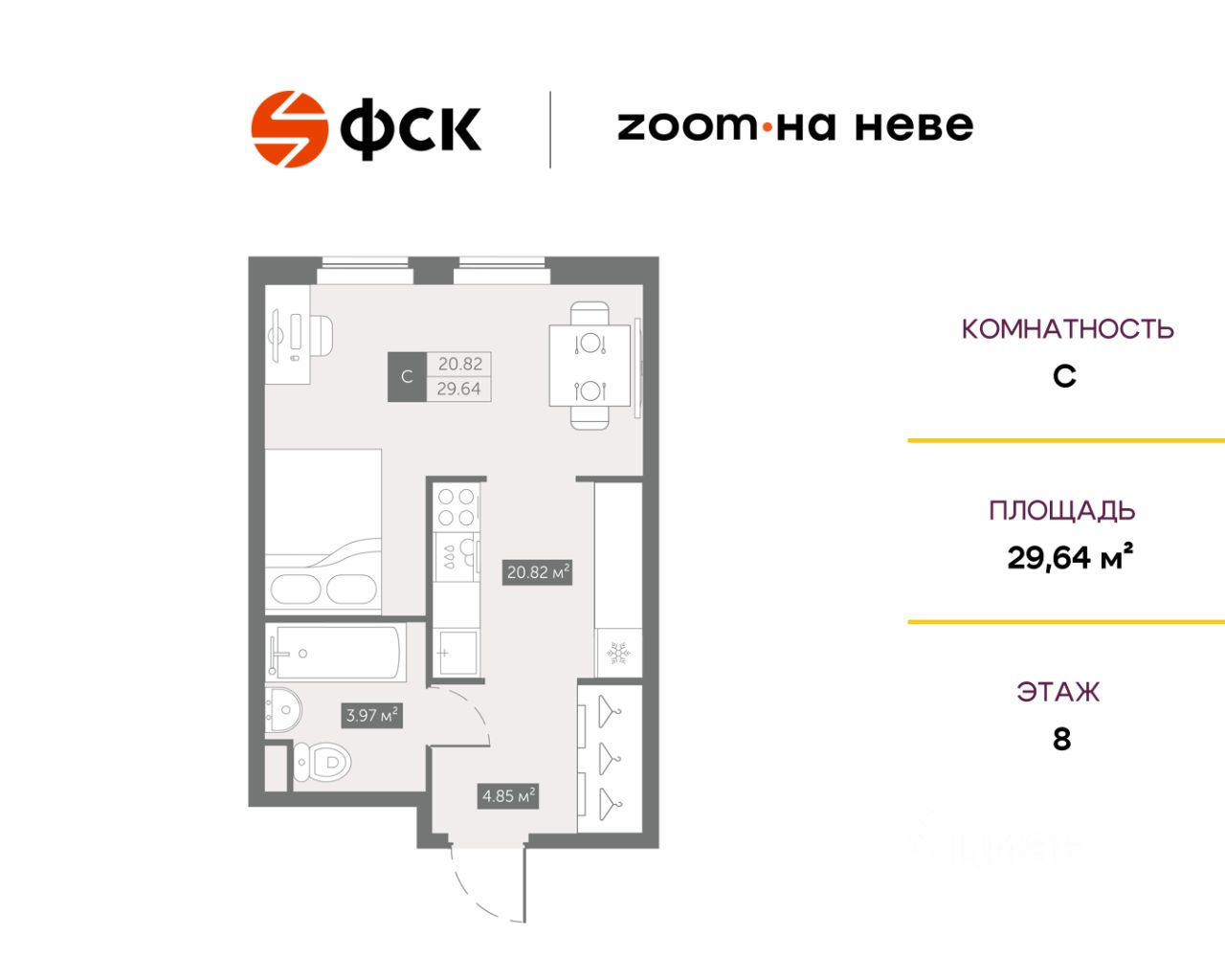 Цена со скидкой до 30% в прямой продаже от застройщика — только в этом месяце. При покупке апартаментов - паркинг за полцены. На все апартаменты действует беспроцентная рассрочка. Купите на распродаже! Покупка недвижимости в Zoom на Неве сейчас со скидкой до 30% позволит через 2 года получить доход до 6 300 000 руб. Роскошные виды на Неву. Апартамент-студия в комплексе класса бизнес-лайт Zoom на Неве на 8-м этаже. Общая площадь 29,64. Без отделки.