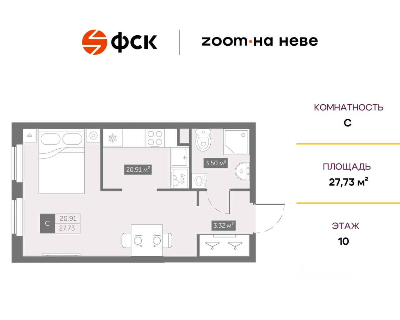 Цена со скидкой до 30% в прямой продаже от застройщика — только в этом месяце. При покупке апартаментов - паркинг за полцены. На все апартаменты действует беспроцентная рассрочка. Купите на распродаже! Покупка недвижимости в Zoom на Неве сейчас со скидкой до 30% позволит через 2 года получить доход до 6 300 000 руб. Роскошные виды на Неву. Апартамент-студия в комплексе класса бизнес-лайт Zoom на Неве на 10-м этаже. Общая площадь 27,73. Без отделки.