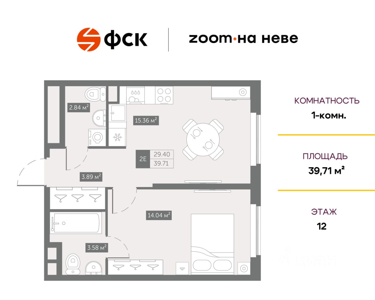 Цена со скидкой до 30% в прямой продаже от застройщика — только в этом месяце. При покупке апартаментов - паркинг за полцены. На все апартаменты действует беспроцентная рассрочка. Купите на распродаже! Покупка недвижимости в Zoom на Неве сейчас со скидкой до 30% позволит через 2 года получить доход до 6 300 000 руб. Роскошные виды на Неву. 1-к апартамент в комплексе класса бизнес-лайт Zoom на Неве на 12-м этаже. Общая площадь 39,71. Предчистовая отделка.