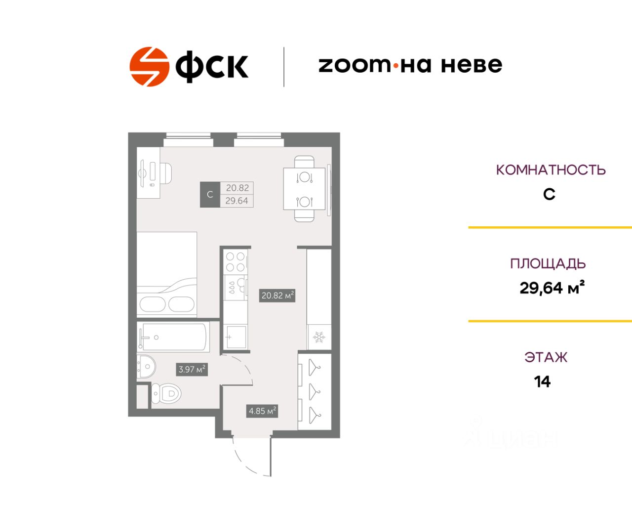 Цена со скидкой до 30% в прямой продаже от застройщика — только в этом месяце. При покупке апартаментов - паркинг за полцены. На все апартаменты действует беспроцентная рассрочка. Купите на распродаже! Покупка недвижимости в Zoom на Неве сейчас со скидкой до 30% позволит через 2 года получить доход до 6 300 000 руб. Роскошные виды на Неву. Апартамент-студия в комплексе класса бизнес-лайт Zoom на Неве на 14-м этаже. Общая площадь 29,64. Без отделки.